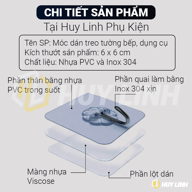 - Móc dán siêu dính trong suốt tiện lợi được làm từ vật liệu cao cấp với keo dán có độ dính cao là giải pháp cho những gia đình cần nhiều diện tích lưu trữ phụ kiện.