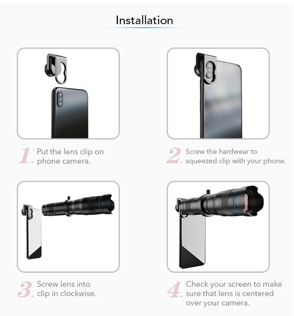 - Ống kính Bộ sản phẩm hoàn hảo cho tất cả mọi người, từ bạn bè của bạn để bố mẹ. Nó phù hợp trong túi của bạn và dễ dàng lắp đặt, mang theo và bảo quản, lấy hình ảnh cho Đảng, lễ hội âm nhạc, cắm trại, đi bộ đường dài, đi du lịch, ngắm chim v. v... và giữ tất cả các bạn thú vị kỷ niệm.