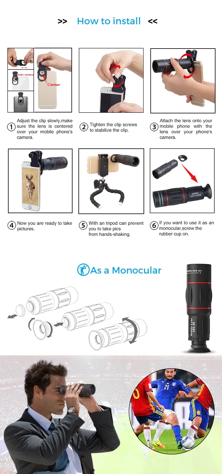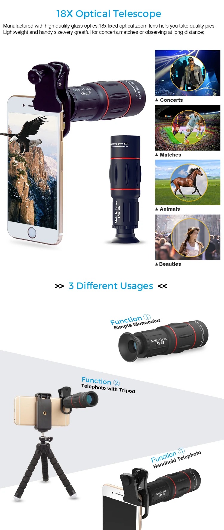 - 1 x Ống kính tele Apexel 18X