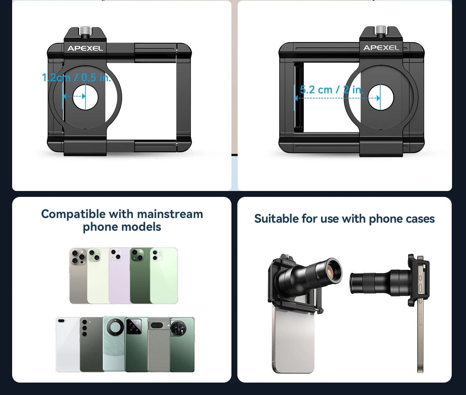 - Khoảng gắn điện thoại: 7-10 cm (2.8-3.9 in)
