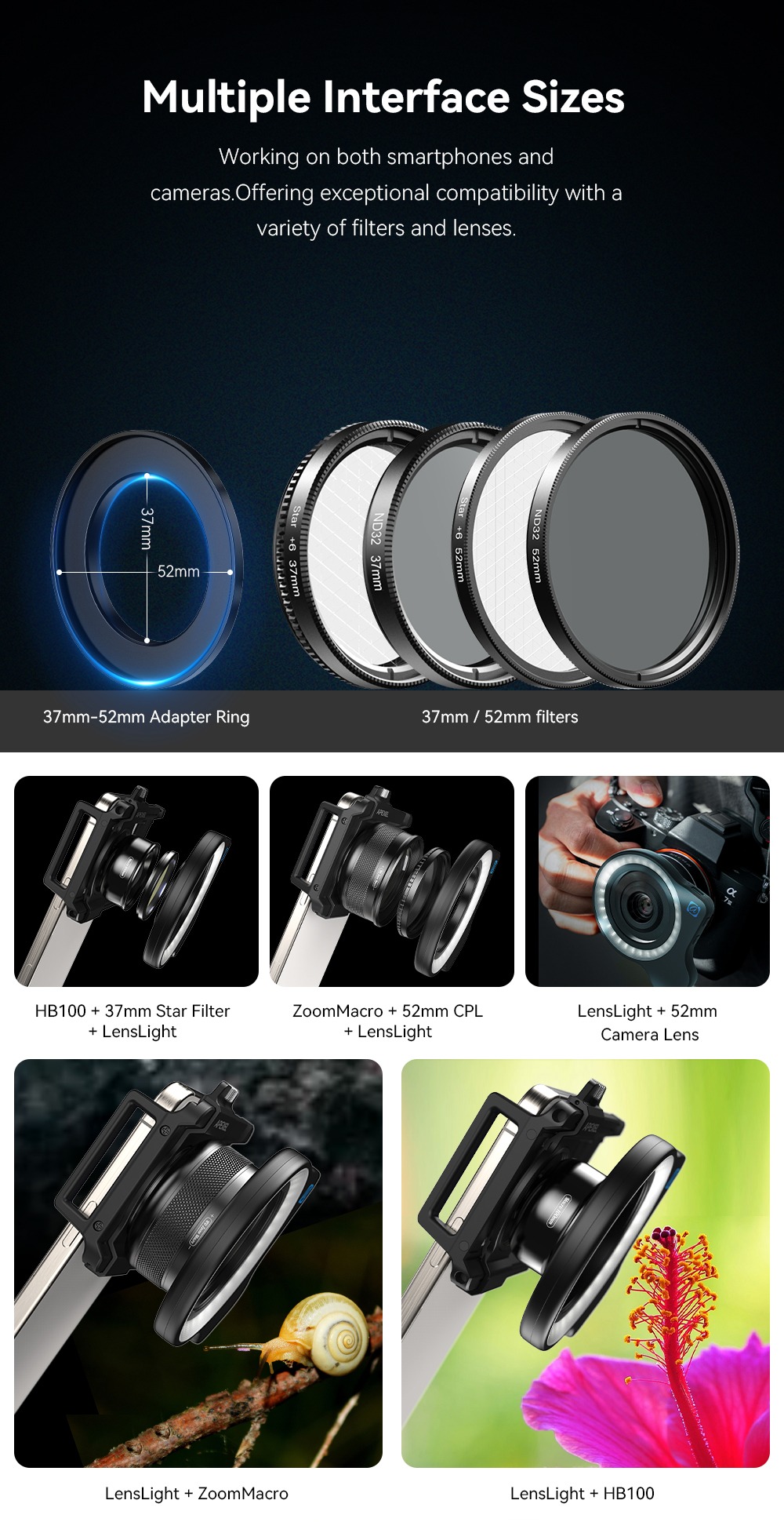 - Dùng cho: bộ lọc 37mm hoặc 52mm