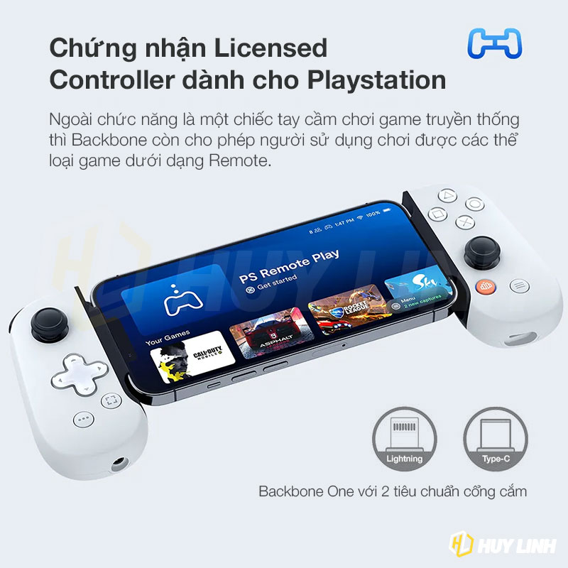 - PS REMOTE PLAY Backbone One PlayStation Edition là phụ kiện controller chơi game đỉnh cao dành cho chiếc iPhone của bạn. Sản phẩm được lấy cảm hứng từ tay cầm Dualsense 5, do Playstation và Backbone hợp tác sản xuất. Đảm bảo tương thích tốt với các nội dung giải trí của PlayStation và cho trải nghiệm trọn vẹn.