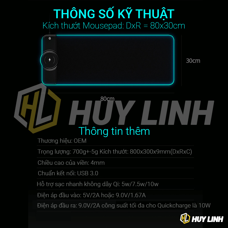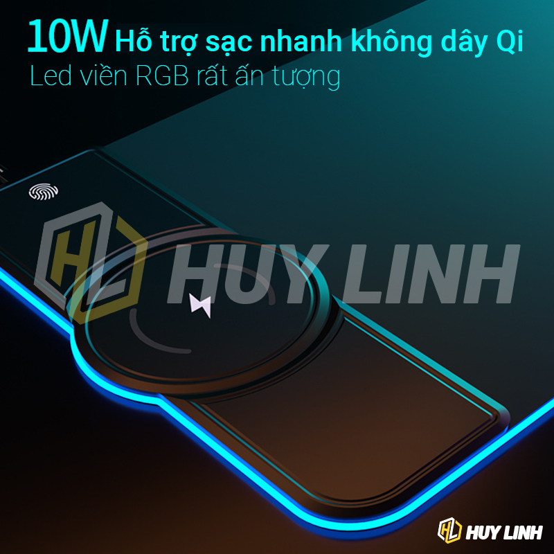 - Tên sản phẩm: Mousepad lót chuột đèn led RGB có tích hợp sạc nhanh không dây