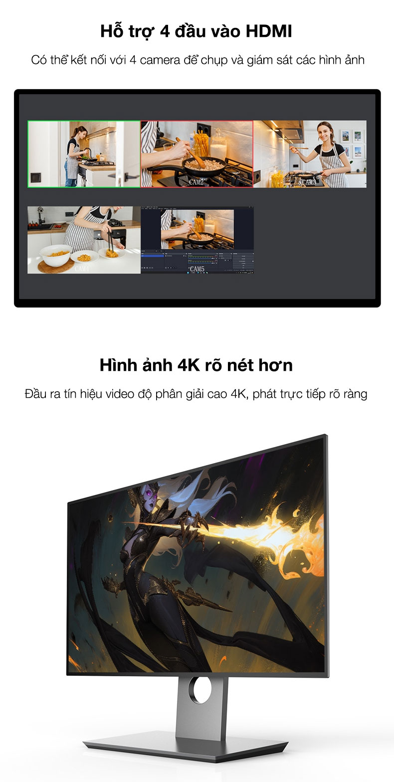 - Hình ảnh 4K rõ nét hơn Đầu ra tín hiệu video độ phân giải cao 4K, phát trực tiếp rõ ràng