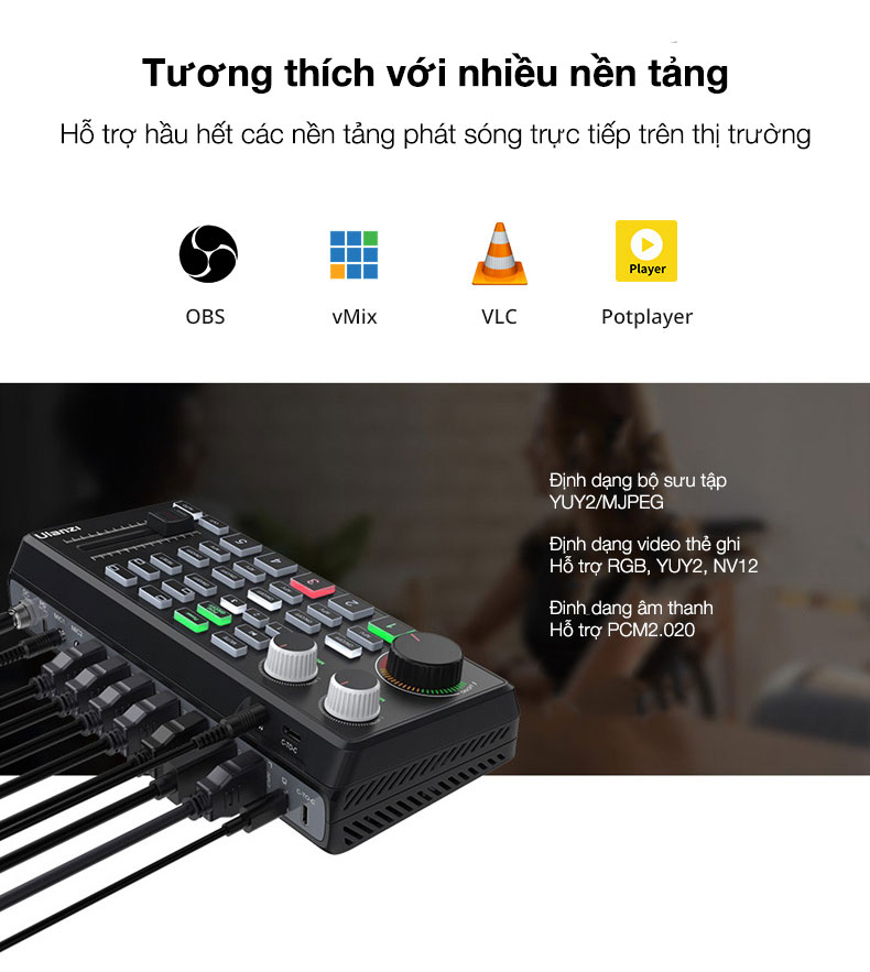 - Tương thích với nhiều nền tảng ỗ trợ hầu hết các nền tảng phát sóng trực tiếp trên thị trường