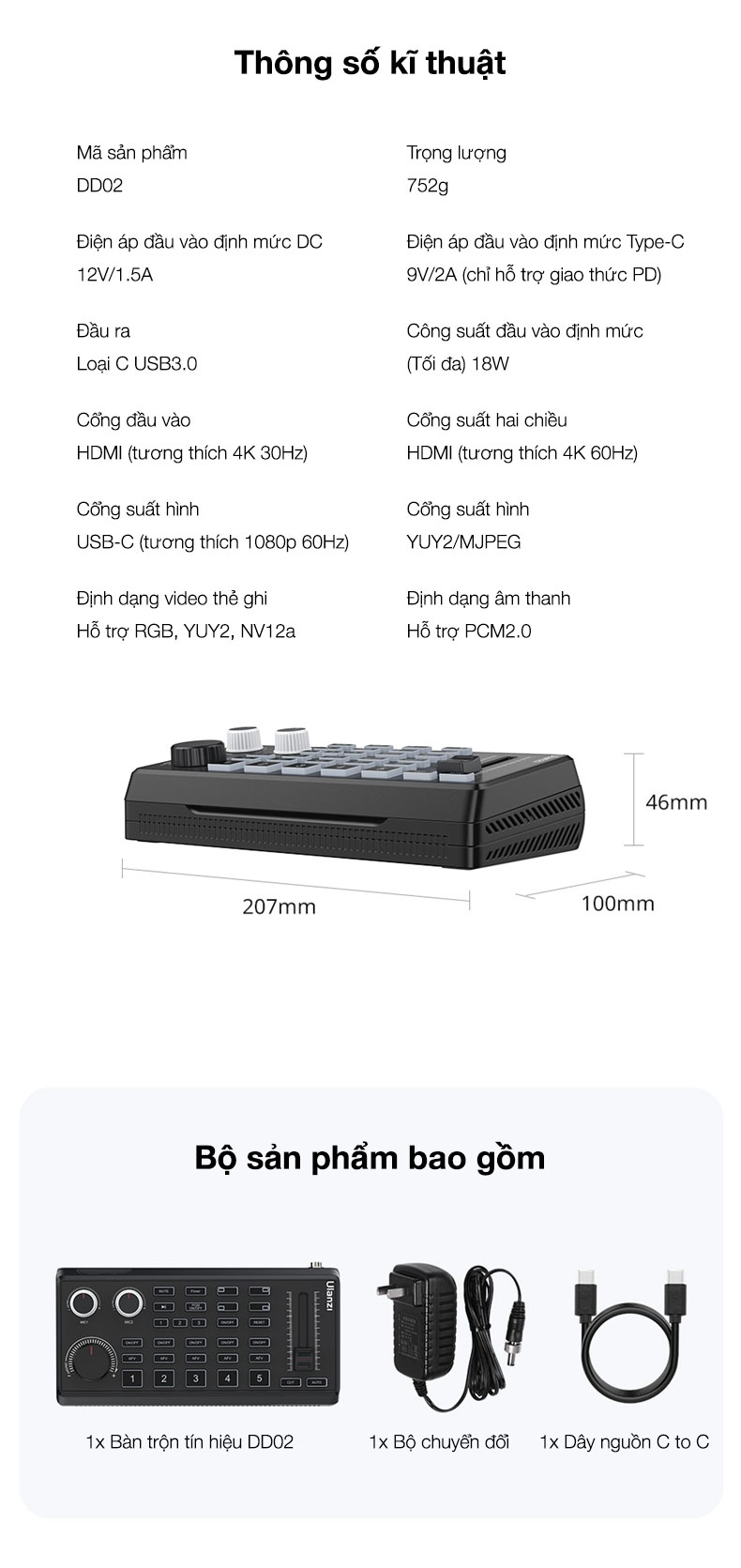 Thông số kỹ thuật sản phẩm: