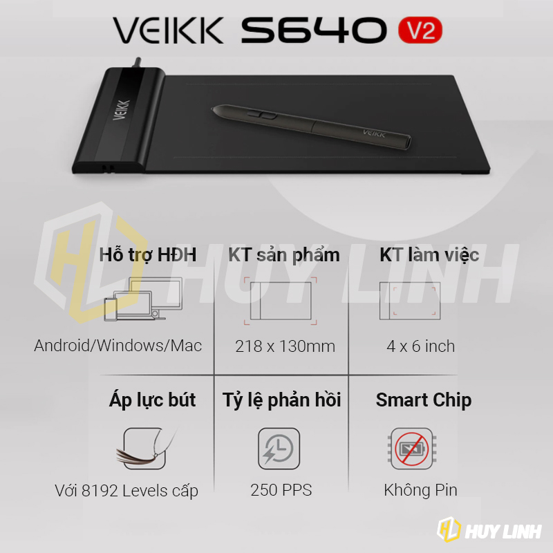 - Lực nhấn của bút: 8192 mức