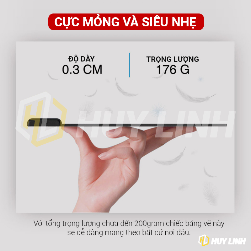- Kích Thước sản phẩm: 218mm (L) x 130mm (W) x 9mm (H)