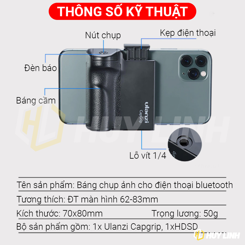 - Với phổ 1/4inch thuận tiện để gắn nó trên chân máy.