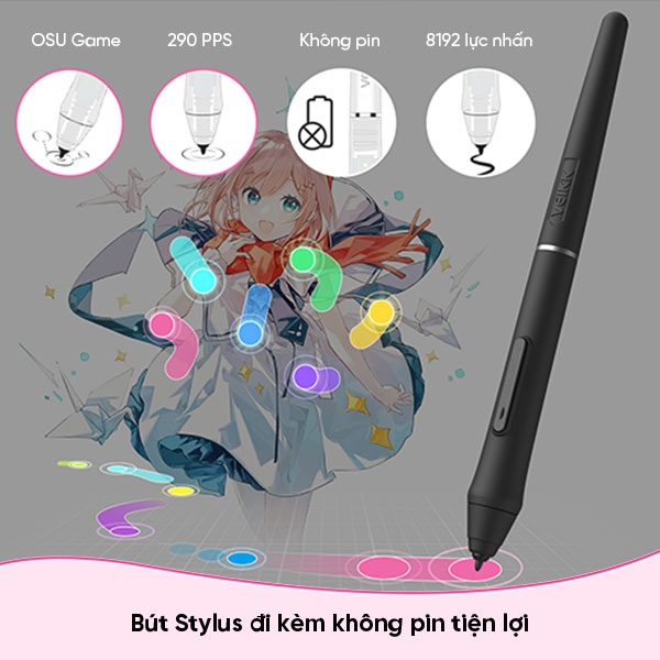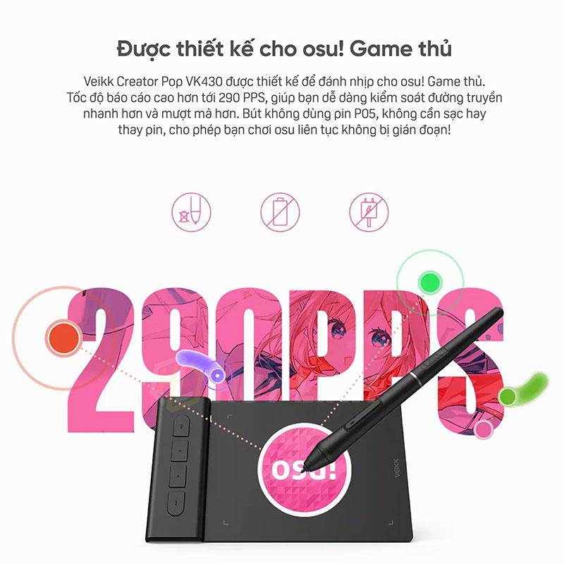 - Bút không pin P05, cho phép bạn liên tục chơi osu. Mức độ nhạy áp lực 8192 có thể xác định bất kỳ nét tinh tế nào, xác định chính xác vị trí chuột và nhấn nhịp.
