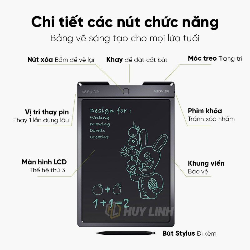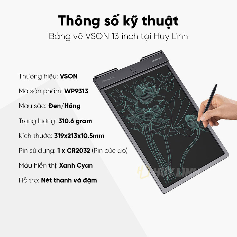 - Bảng viết vẽ tự xóa thông minh cho bé Vson WP9313 13inch. Xu hướng mới cho nhu cầu ghi chú hoặc vẽ