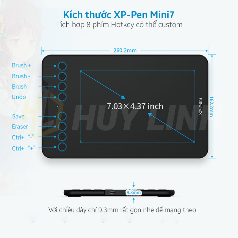 - Kích thước : 260.2 x 162.2 x 9.3mm