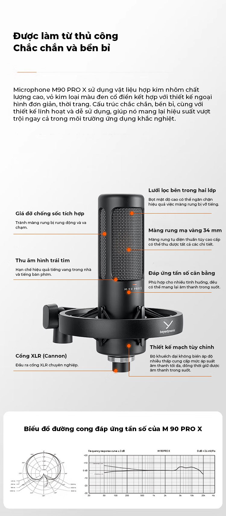 - Giao diện/Cổng kết nối: XLR, 3-pin, male