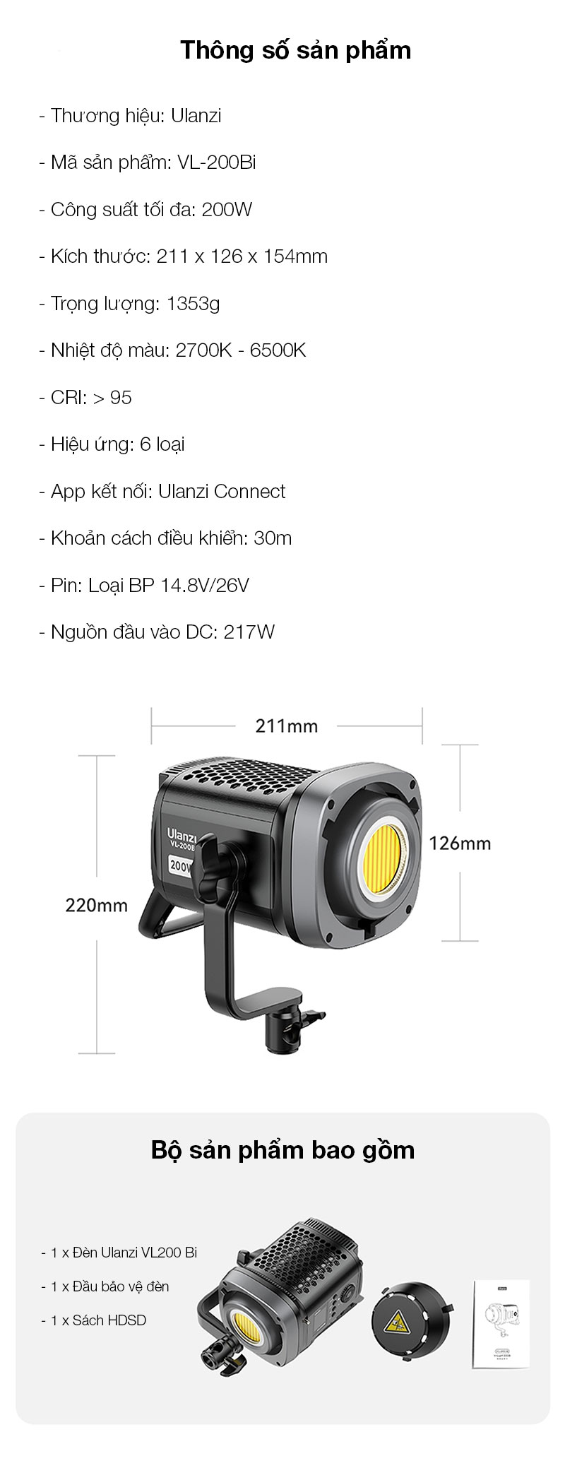 - 1 x Đèn Ulanzi VL200 Bi