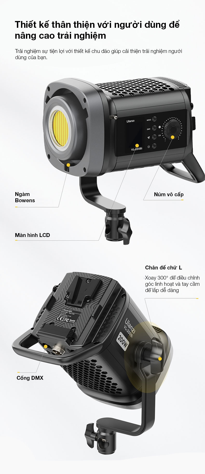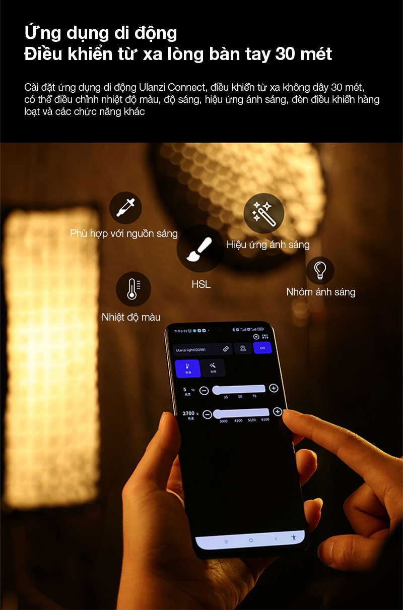 - Điều khiển từ xa tiện lợi qua App điện thoại Ulanzi Connect
