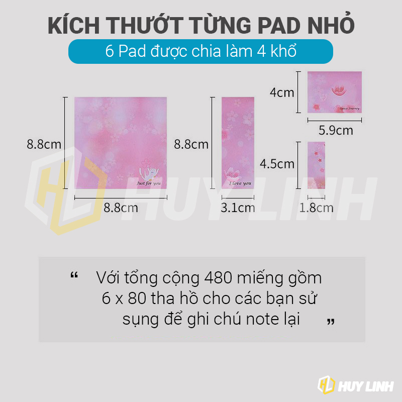 - Hộp 6 tập giấy note màu hình hoa với thiết kế nhỏ gọn, đáng yêu giúp bạn ghi chú các thông tin quan trọng, thông tin bổ sung một cách nhanh chóng.