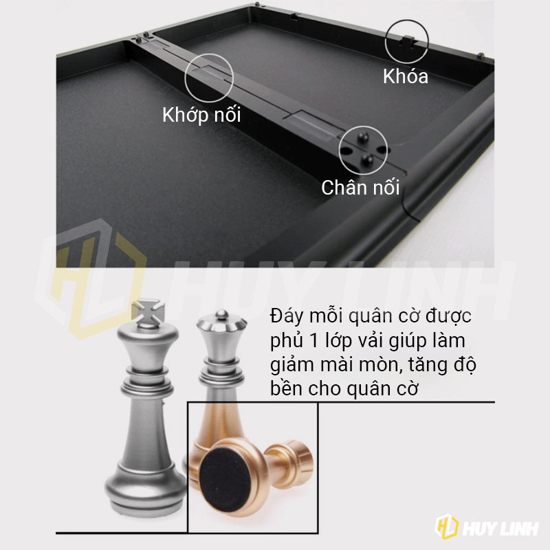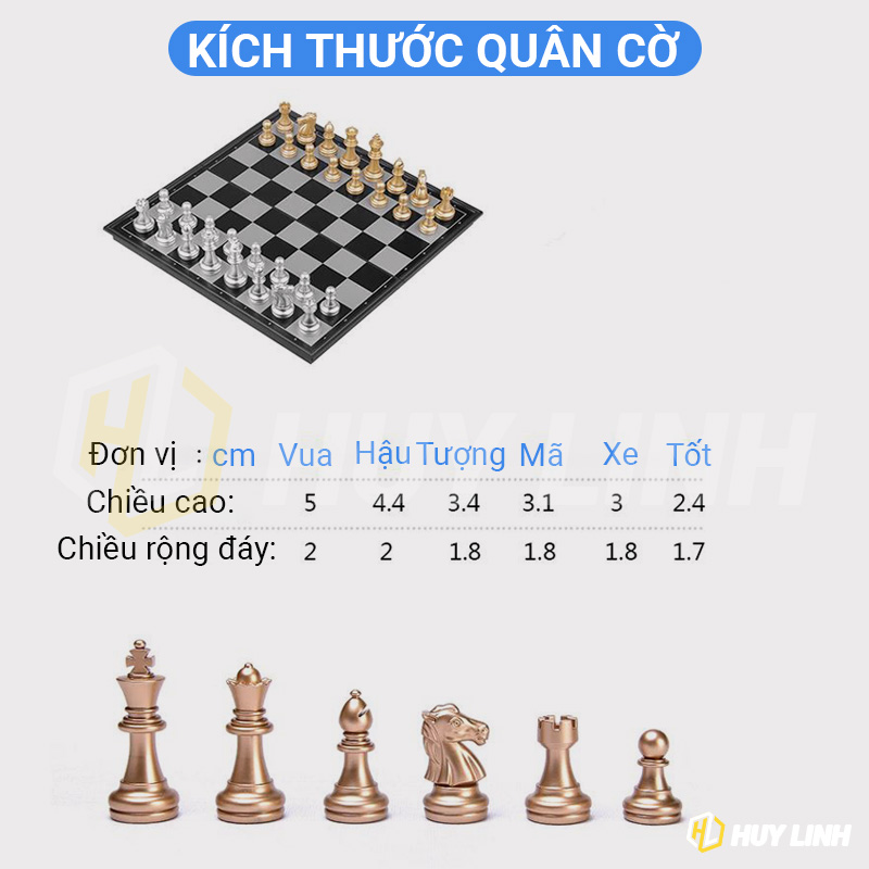 - Màu sắc: Quân cờ 2 màu vàng và bạc