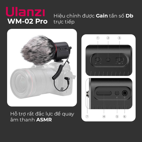 2/ Micro định hướng Ulanzi WM-02 Pro (Điều chỉnh trực tiếp Gain phù hợp ASMR)
