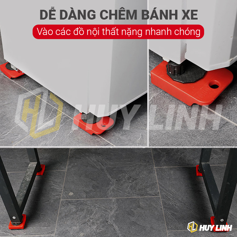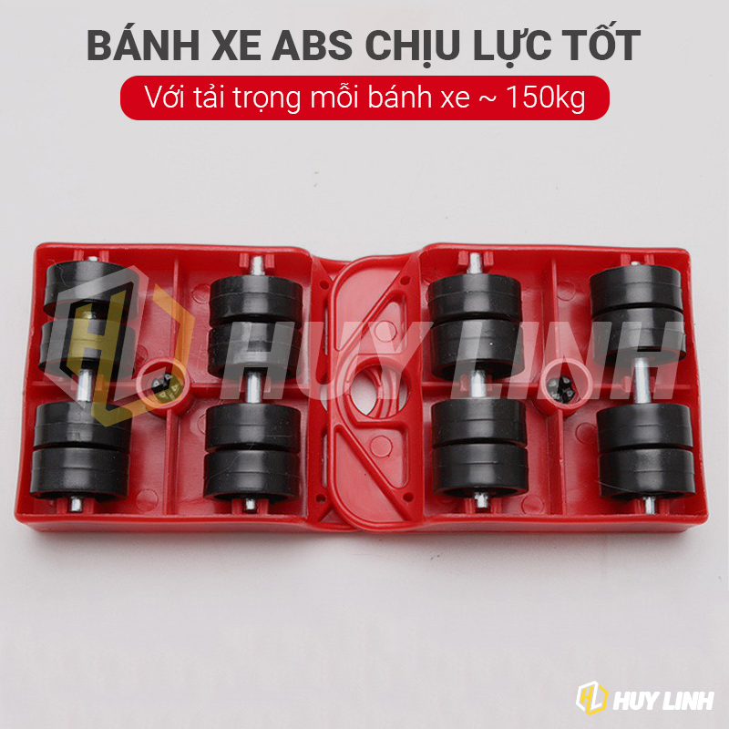 - Bộ sản phẩm bao gồm một tay nâng và hệ 4 con lăn. Tay nâng được làm từ chất liệu thép siêu cứng và siêu bền. Con lăn với các bánh xe được làm từ nhựa ABS chịu lực cao, có khả năng xoay 360 độ giúp bạn dễ dàng di chuyển vật dụng đến đúng vị trí mình mong muốn.