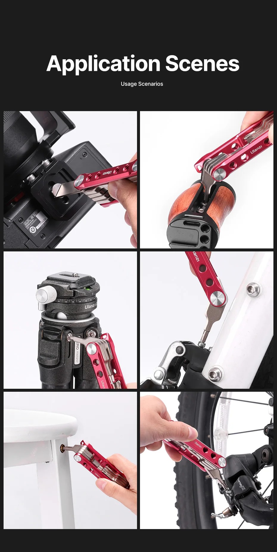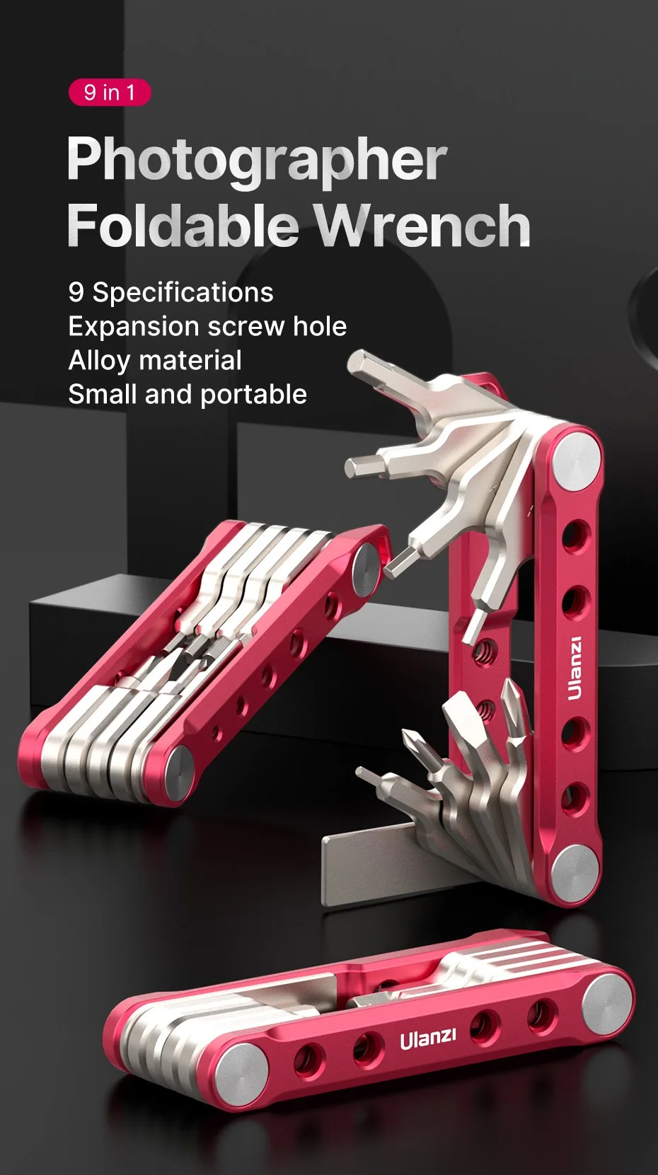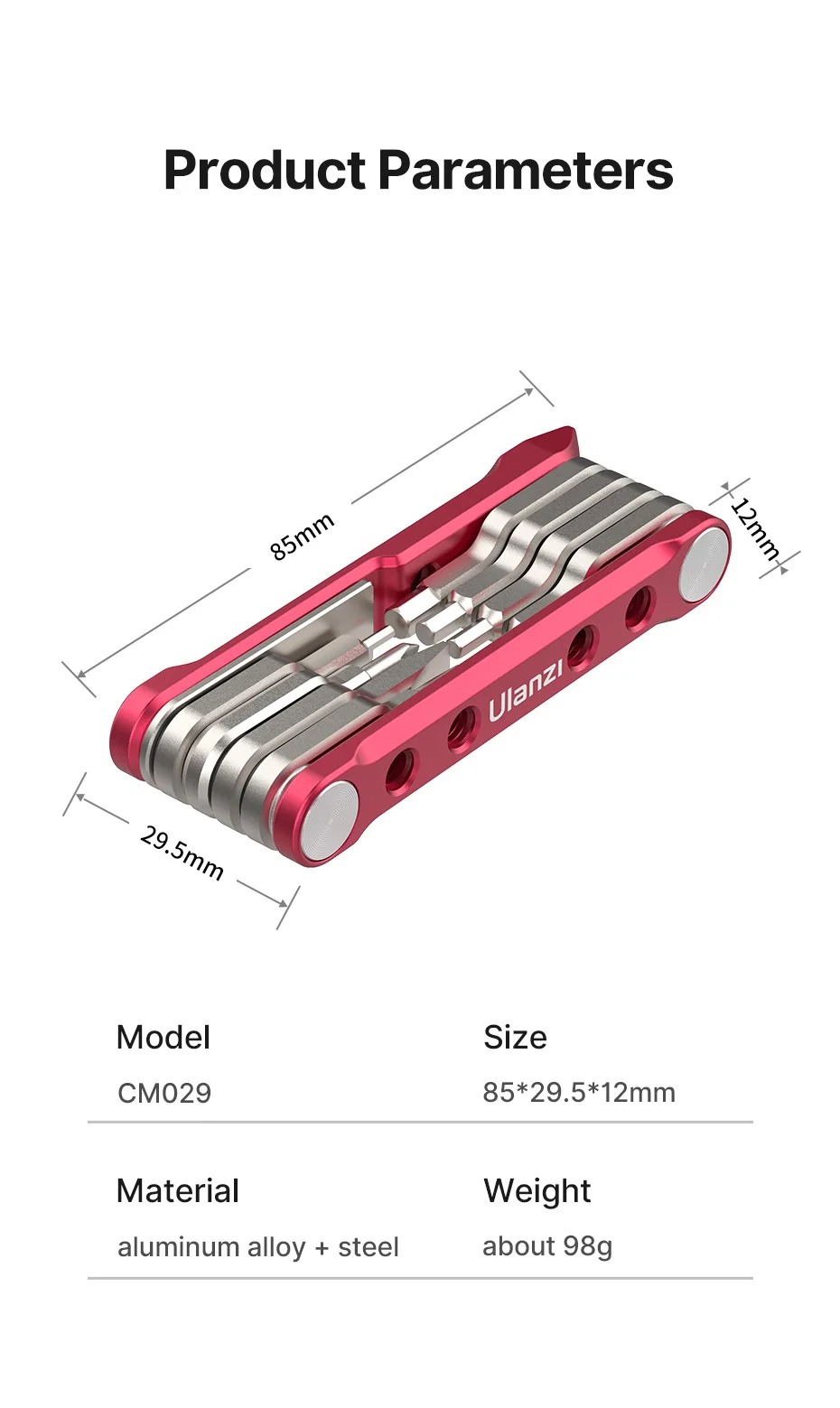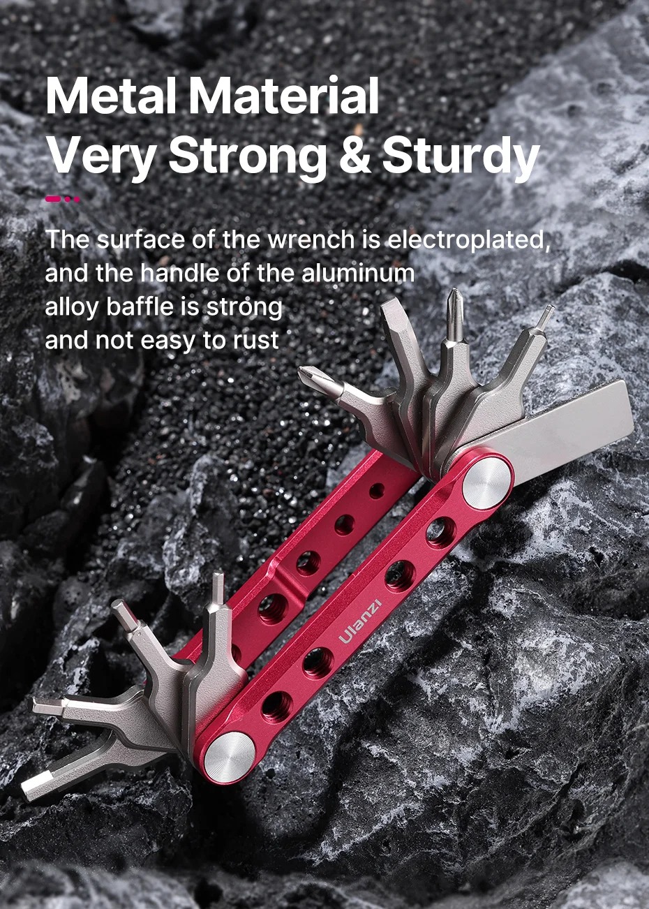 - Kết cấu hoàn toàn bằng kim loại: Cờ lê và tua vít được làm bằng thép không gỉ chắc chắn, và các tấm bên được làm bằng hợp kim nhôm chắc chắn