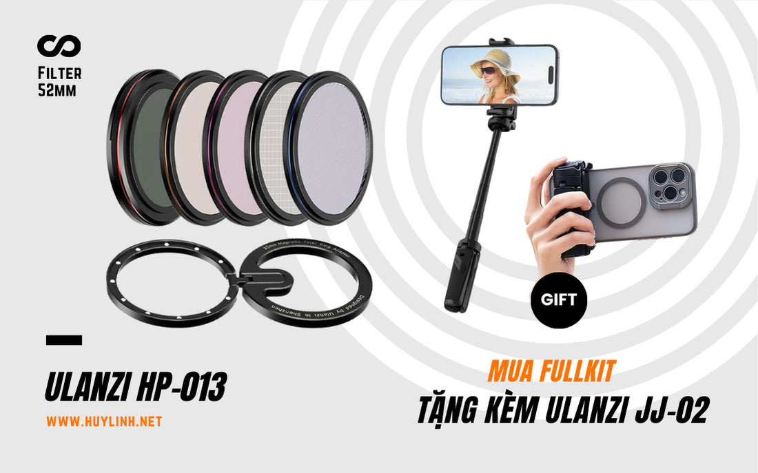 Chương trình khuyến mãi đặc biệt khi mua trọn bộ Filter từ tính Ulanzi HP013 cho iPhone thế hệ mới (NextGen) từ Ulanzi với giá cực tốt. Ngoài ra còn được tặng kèm thêm một Capgrip đa năng Ulanzi JJ02