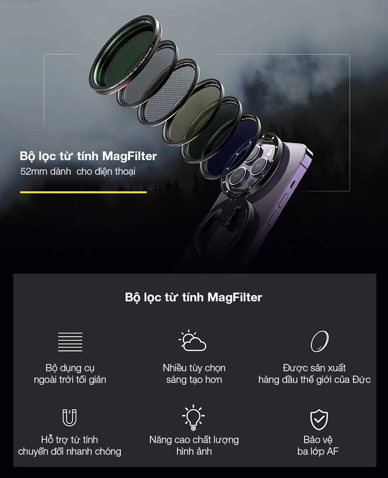 - Đường kính bộ filter: 52mm