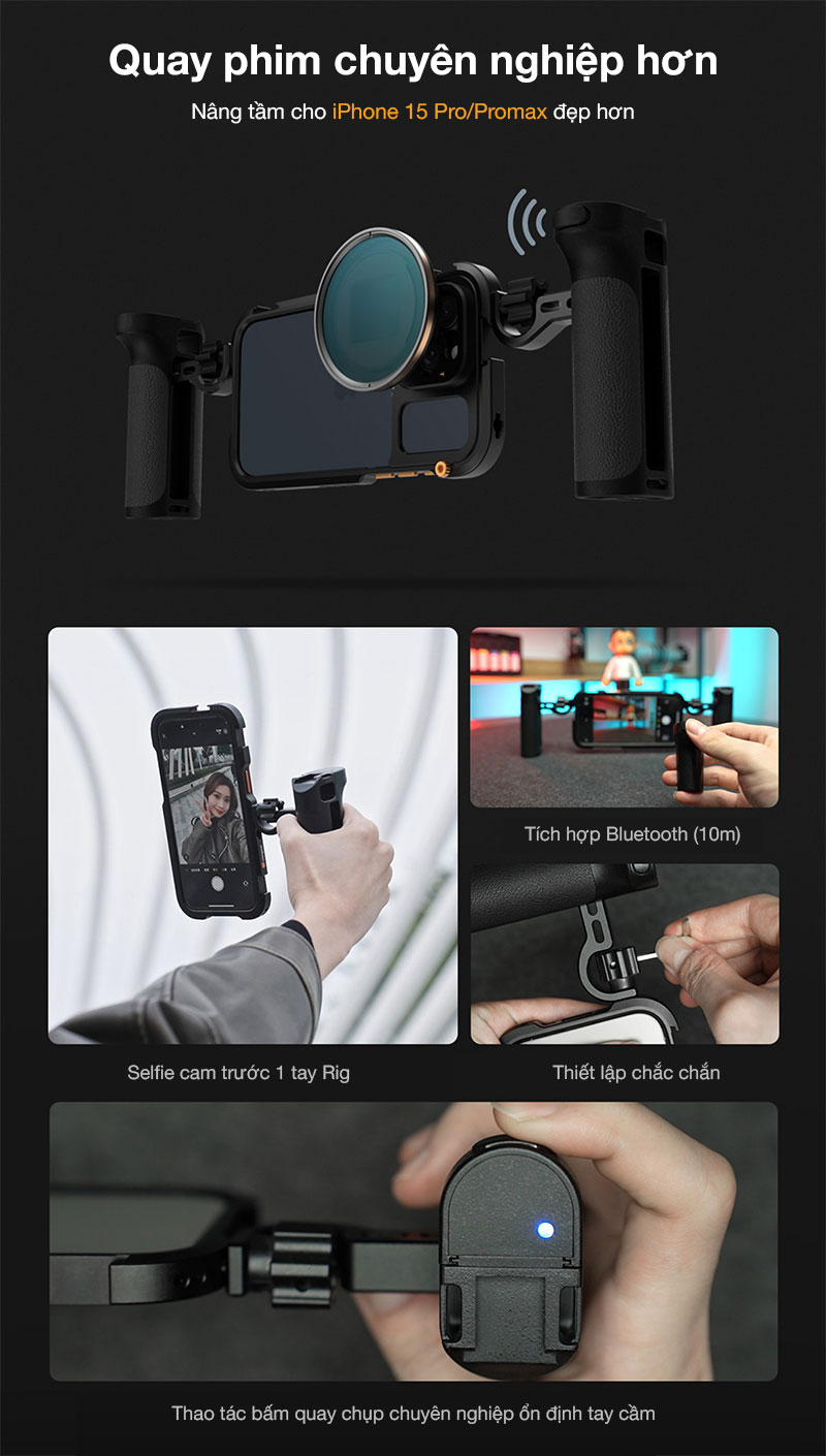 - Tích hợp đầu đủ phụ kiện đi kèm như tay cầm, filter, đèn trợ sáng giúp tăng chất lượng sản phẩm khi quay chụp.