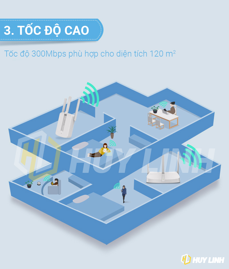 - Ví dụ: thiết bị này đặt cách wifi gốc 50 m thì người cách xa thiết bị này 100 m nữa vẫn bắt được wifi internet