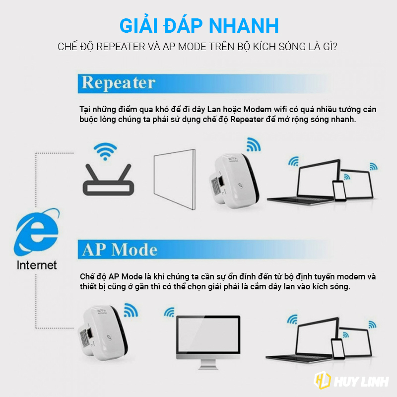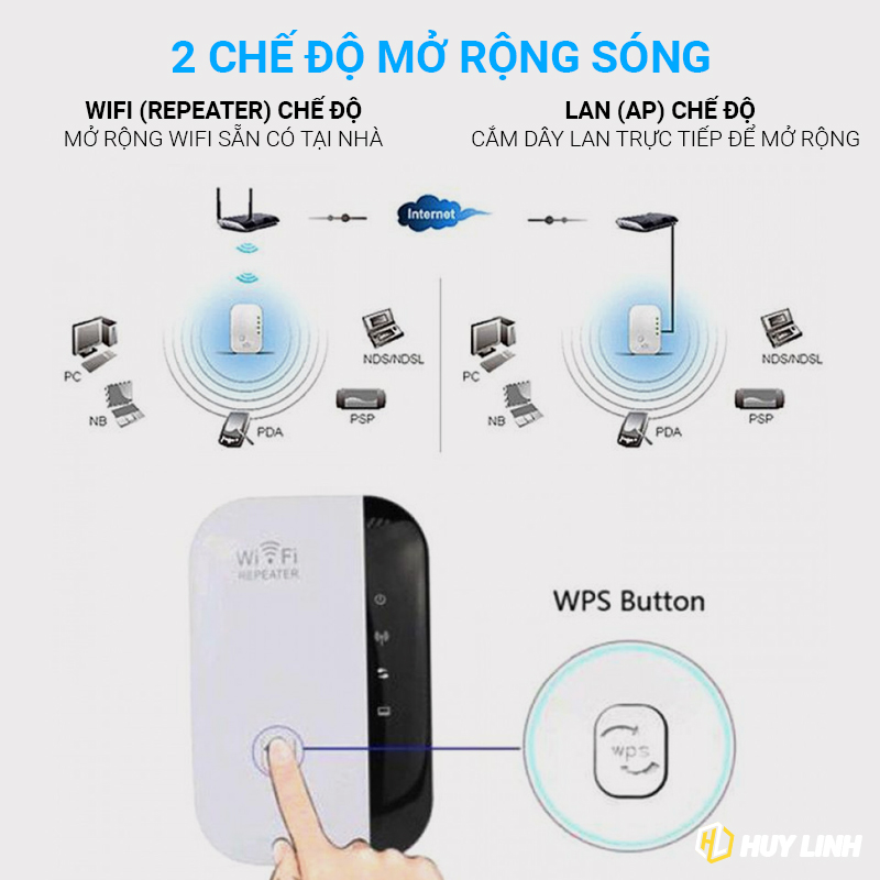 - Thu sóng wifi; khuếch đại sóng và mở rộng vùng phủ sóng cực mạnh.