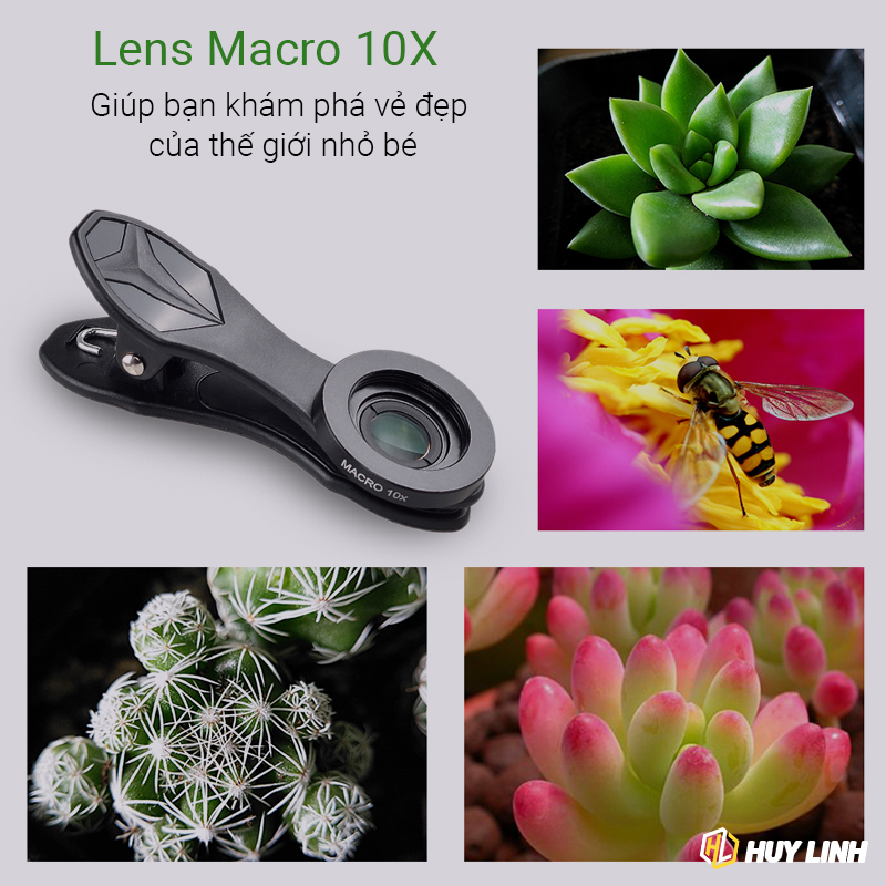 + Ống kính Macro 10 x: có thể chụp ảnh rõ nét các vật thể nhỏ.
