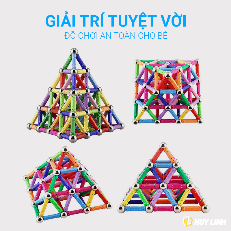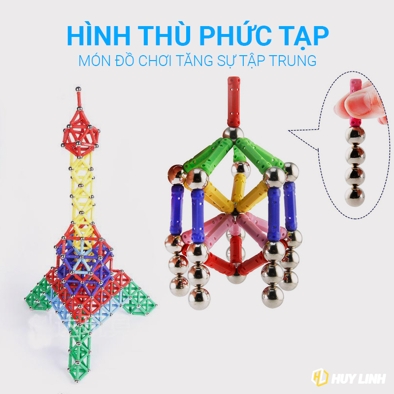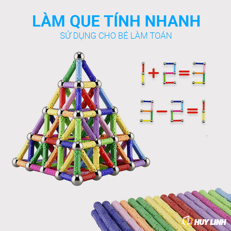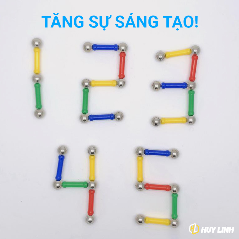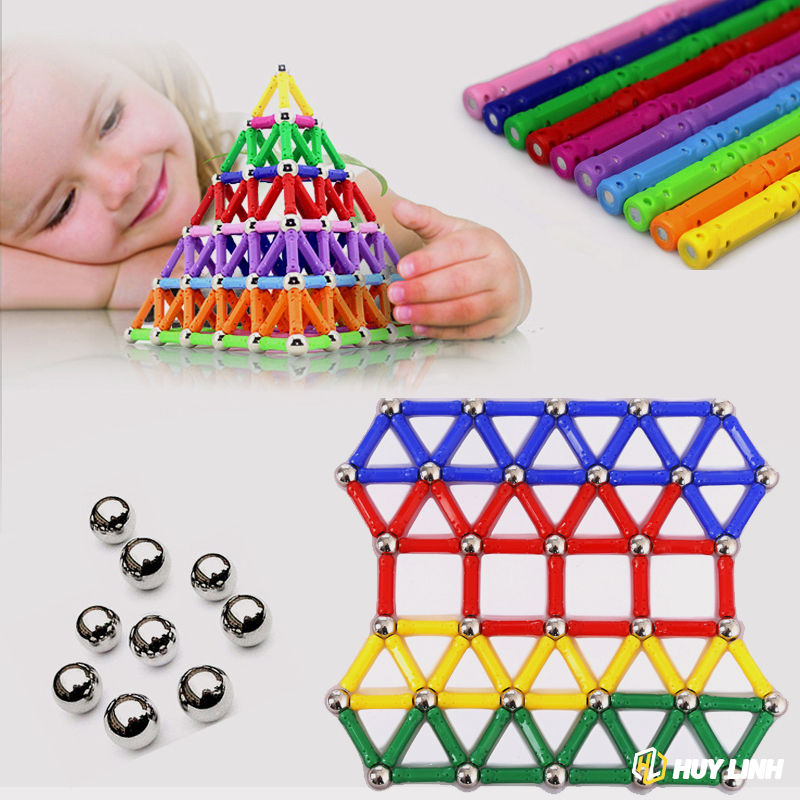 - Bộ sản phẩm bao gồm: 32 viên bi thép và 71 que nam châm thẳng