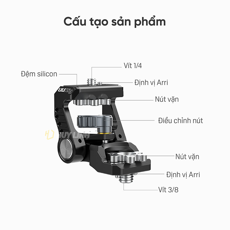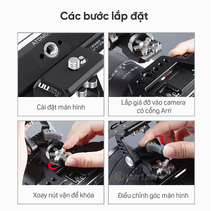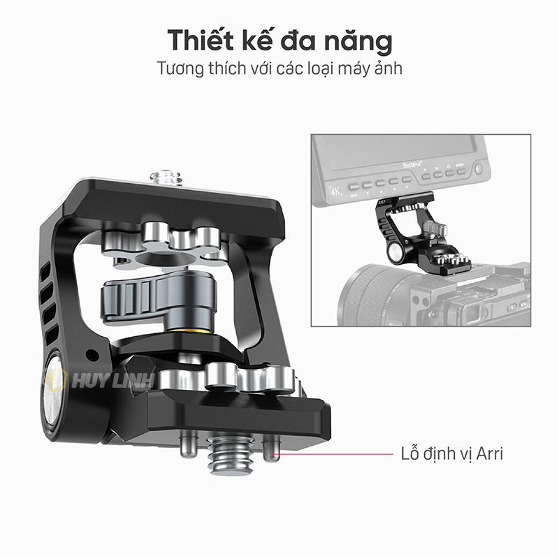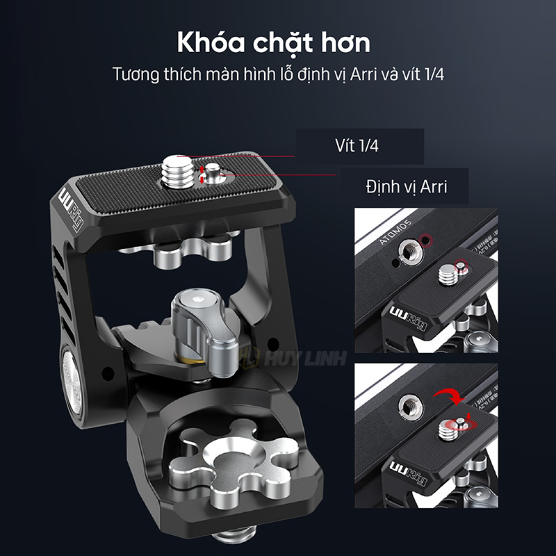 - Giá đỡ Monitor UURIG R058 có ốc ren 1/4 tiêu chuẩn, định vị ARRI, có thể gắn Monitor/Micrô/Đèn LED bổ sung,