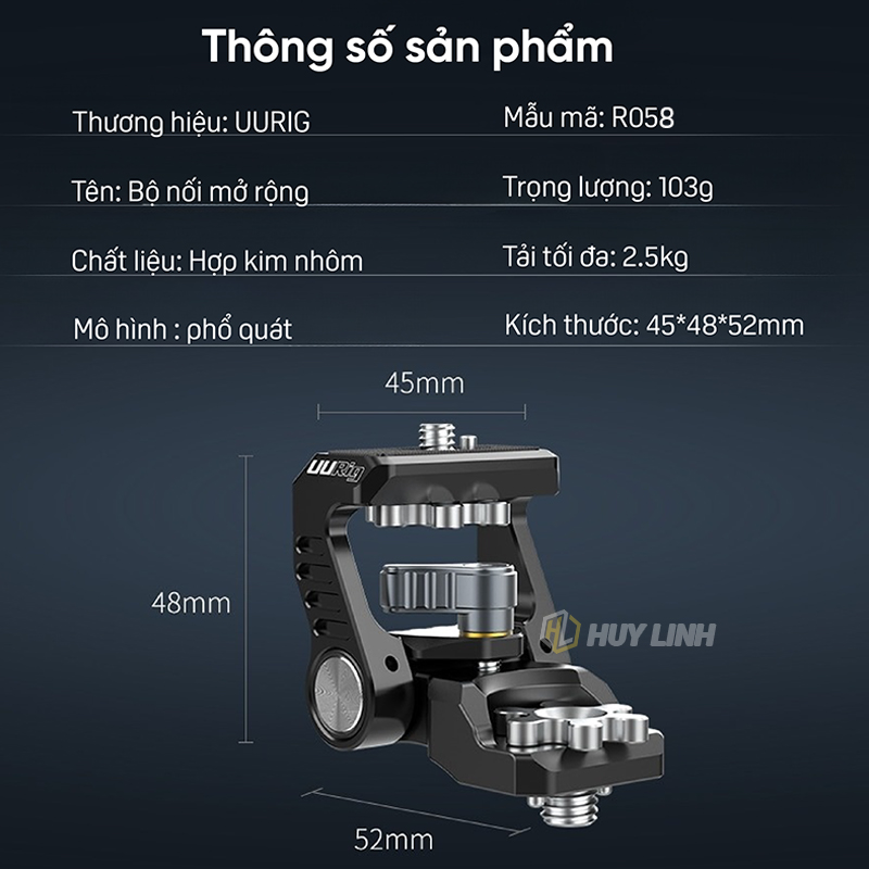 - Trọng tâm của Giá đỡ UUrig R058 có thể được điều chỉnh qua lại bằng cách nới lỏng vít khóa ở giữa.