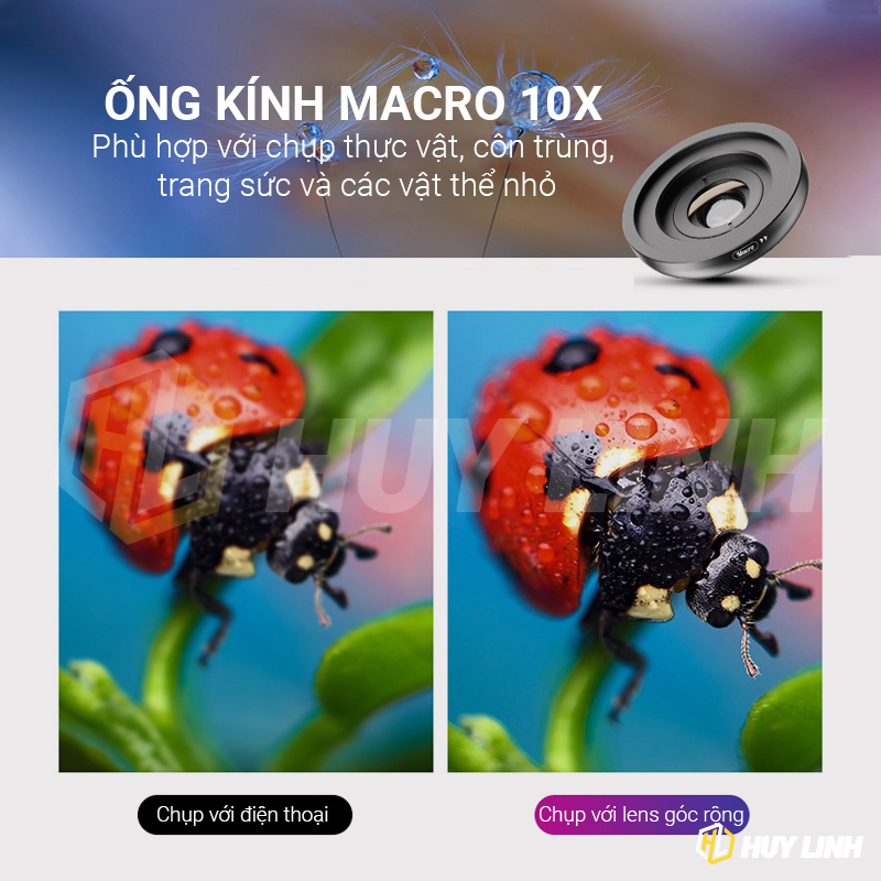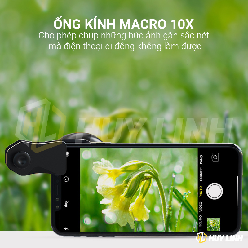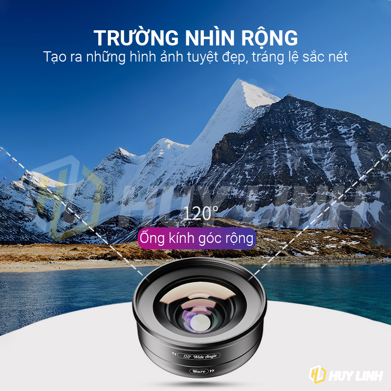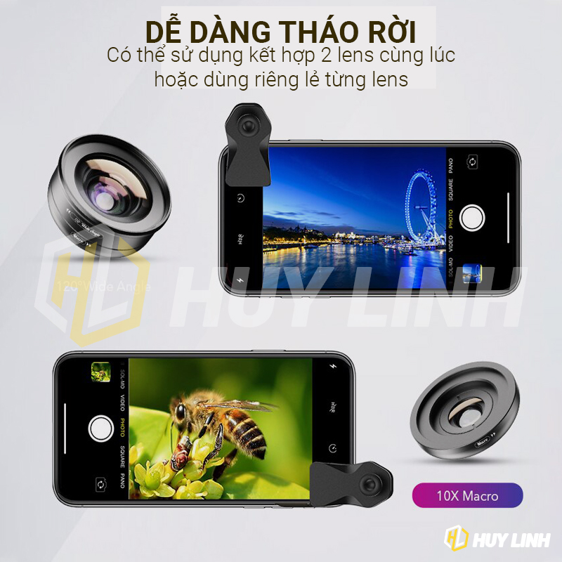 - Loại lens: Góc rộng 120 độ/Macro 10x