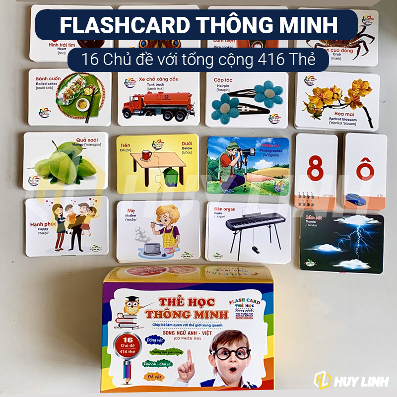 - Bộ sản phẩm thẻ học thông minh gồm 416 thẻ (16 chủ đề)