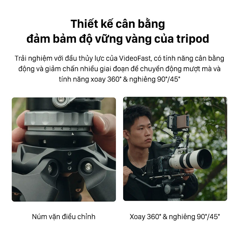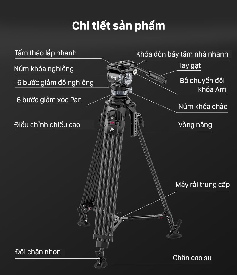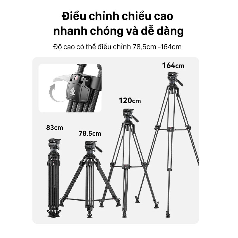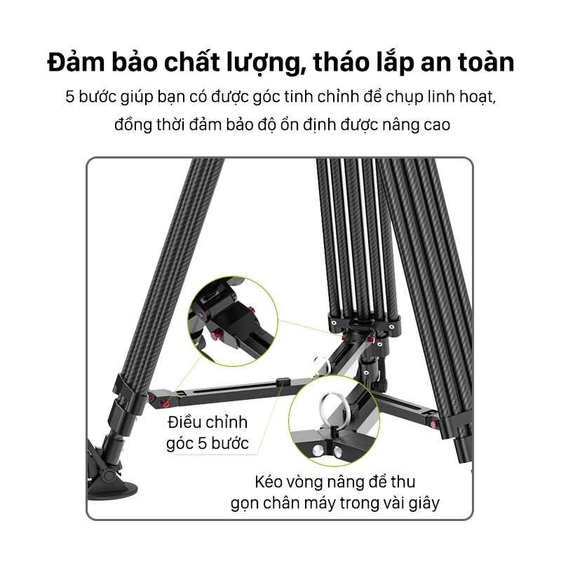 - Thiết kế cân bằng chuyên nghiệp đảm bảm độ vững vàng của tripod