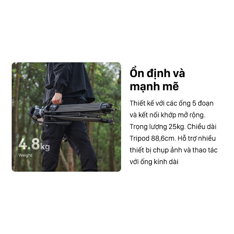 - Tải trọng tripod: 25kg