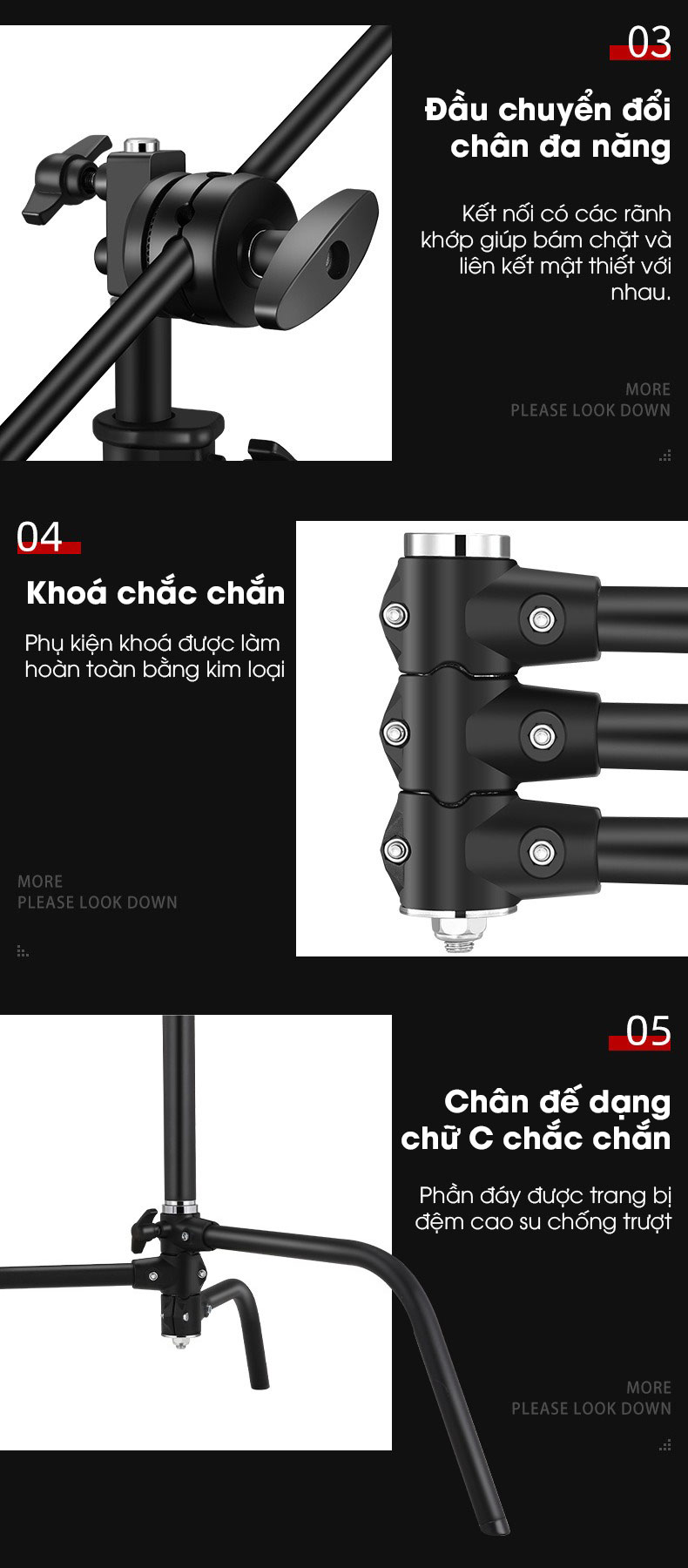- Chân đế dạng chữ C chắc chắn phần đáy được trang bị đệm cao su chống trượt