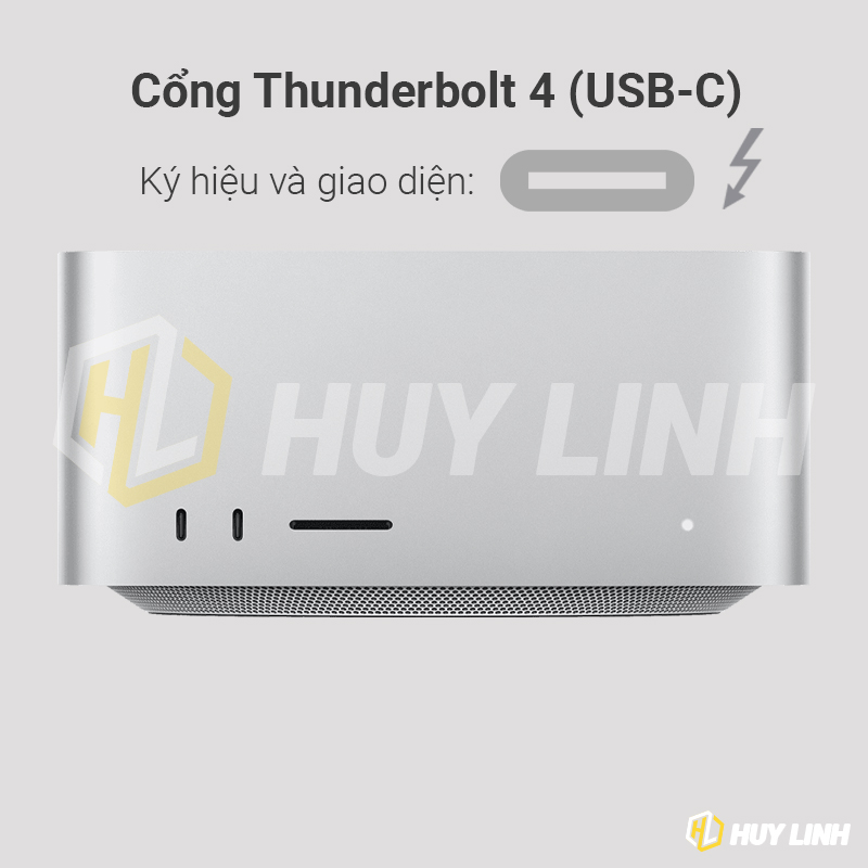 Nếu bạn có Mac Studio chip M1 Ultra, bạn cũng có thể kết nối màn hình rời hoặc thiết bị Thunderbolt với cổng Thunderbolt 4 ở mặt trước của sản phẩm này.