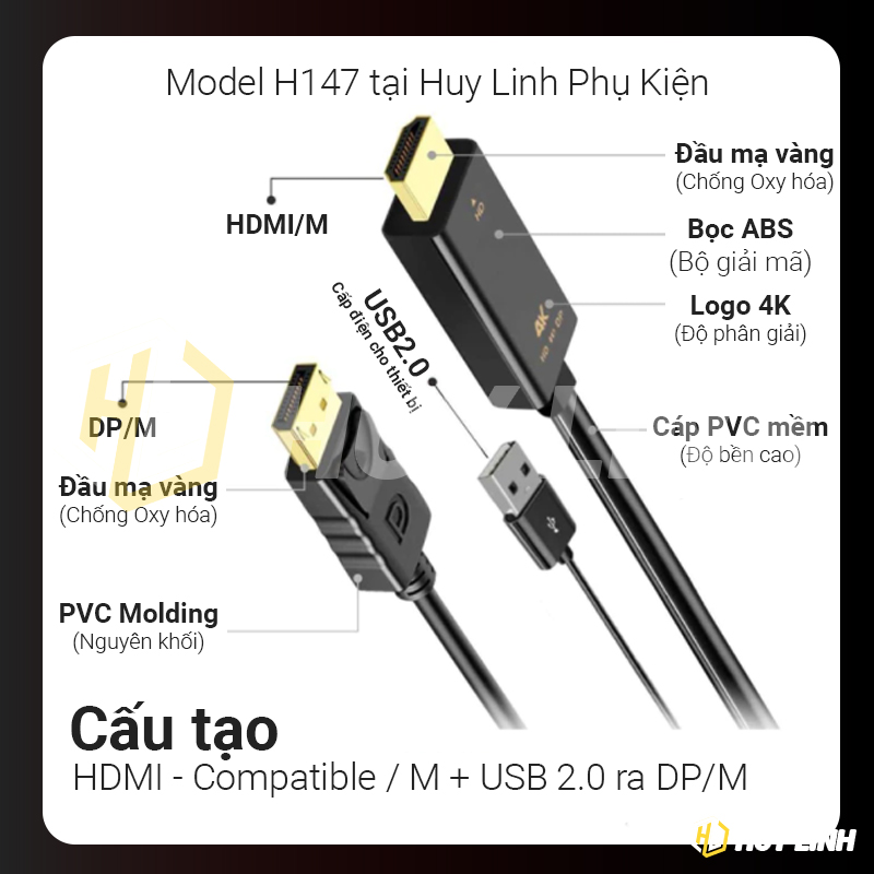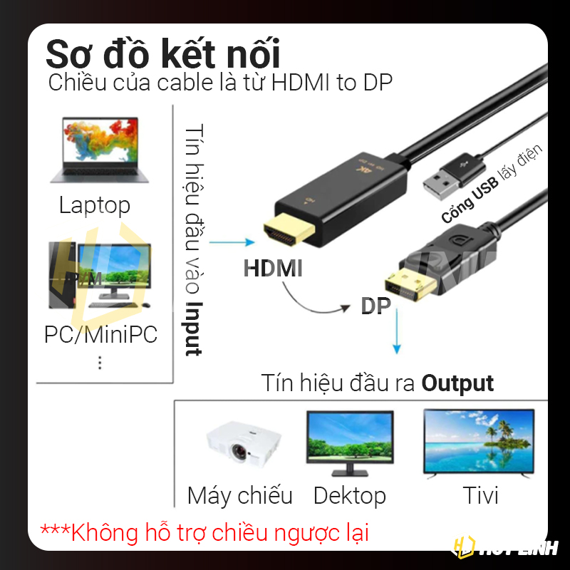 - 1 x Cáp chuyển đổi chiều từ HDMI ra DisplayPort