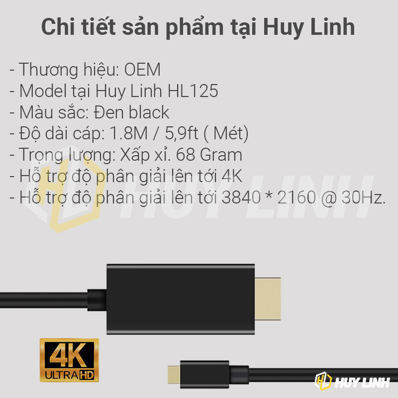 - Độ dài cáp: 1.8M / 5,9ft ( Mét)