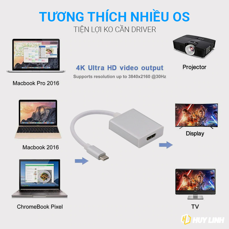 - USB chuẩn C to HDMI Converter hỗ trợ rất nhiều độ phân giải như: 4Kx2K, @ 24Hz, 25Hz, 30Hz; 1080P, @ 24Hz, 50Hz, 60Hz; 720p, 480p, 576i, 480i, @ 50Hz và 60Hz