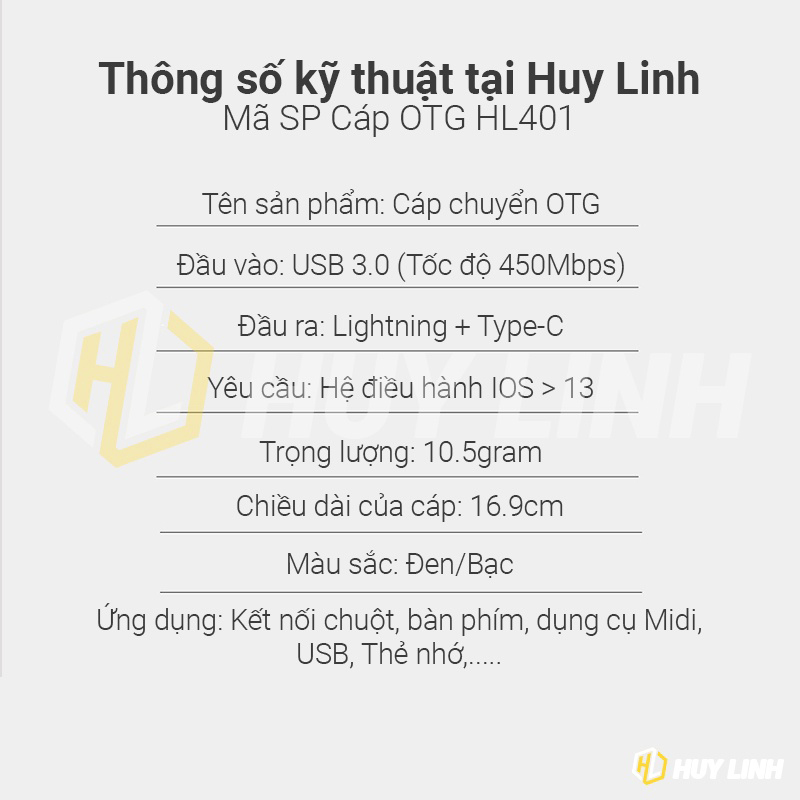 - Tên sản phẩm: Cáp chuyển OTG từ Lightning sang USB 3.0