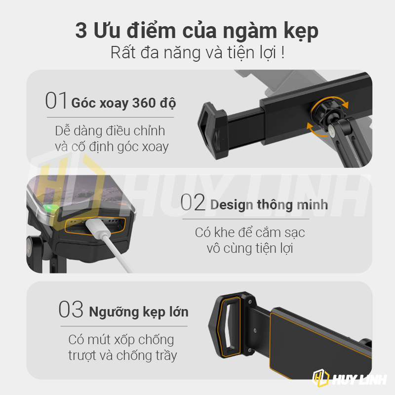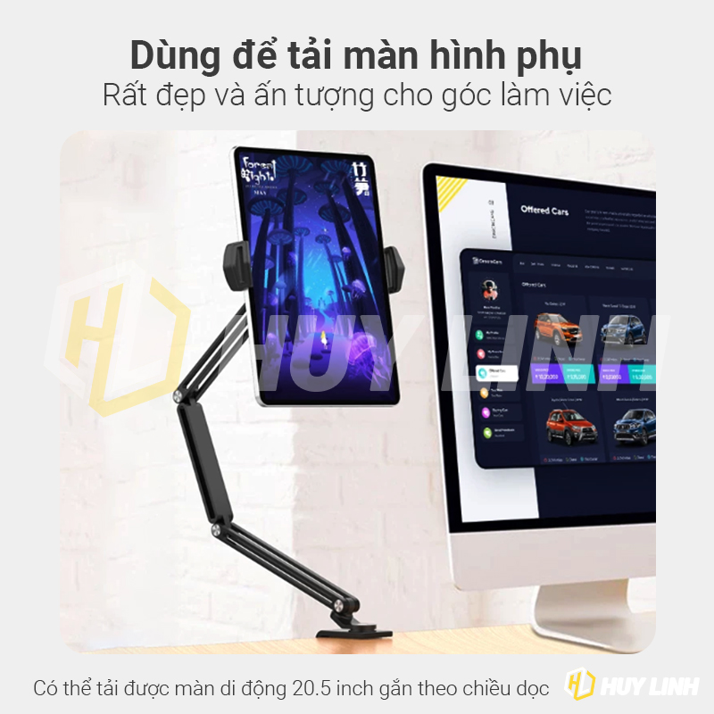 - Giá đỡ để bàn phù hợp với điện thoại và máy tính bảng có kích thước từ 13 - 23cm, trọng tải tối đa 1Kg