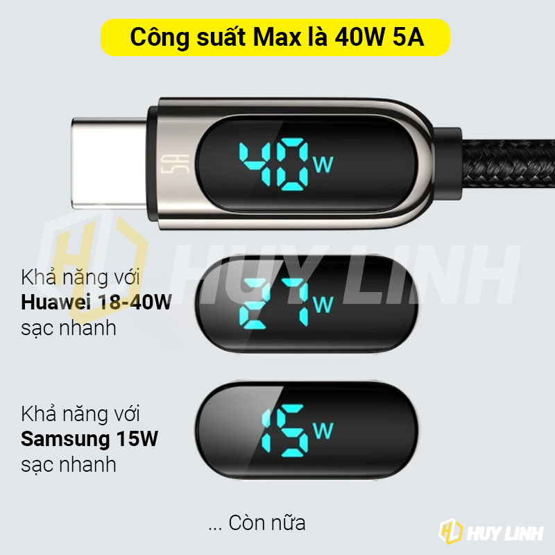 - Hỗ trợ nhiều mức cấu hình dòng điện và điện áp khác nhau (dòng hỗ trợ tối đa lên đến 5A trên Huawei), tương thích với hầu hết các thiết bị số chuẩn type C hiện nay. Tốc độ sạc được điều chỉnh phù hợp với thiết bị và từng giai đoạn sạc và dung lương pin của thiết bị, đảm bảo an toàn, không gây quá nhiệt, chay pin, phù pin.