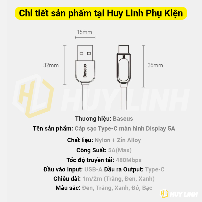 - Tên sản phẩm: Baseus Display Fast Charging Data Cable USB to Type C 5A