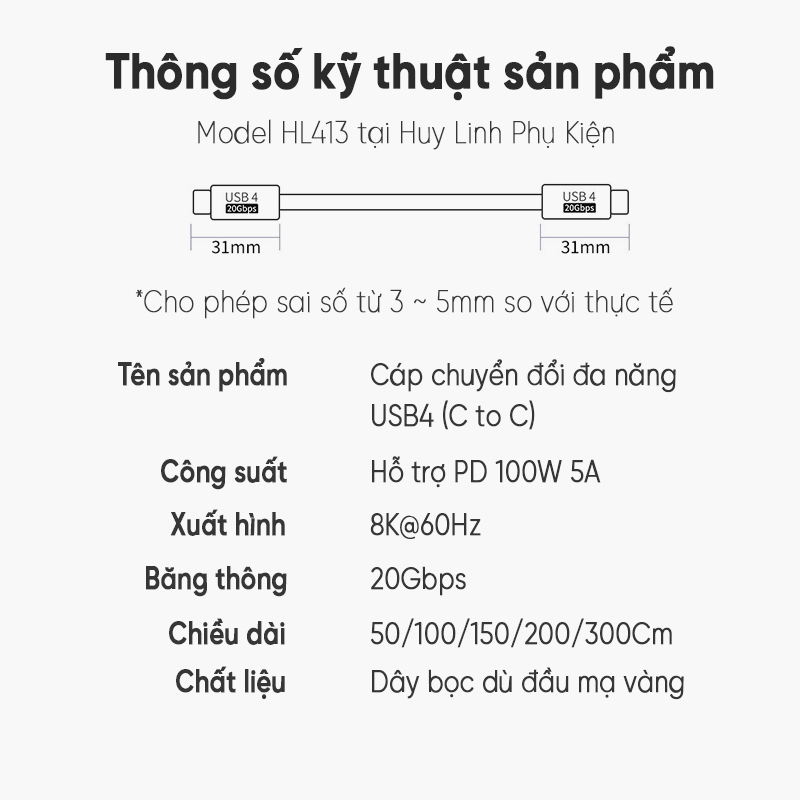 Chi tiết về sản phẩm cáp dữ liệu USB4 type-C 20Gpbs 8K@60Hz Model HL145