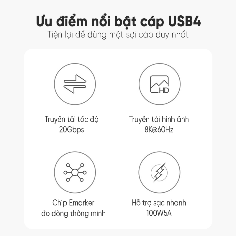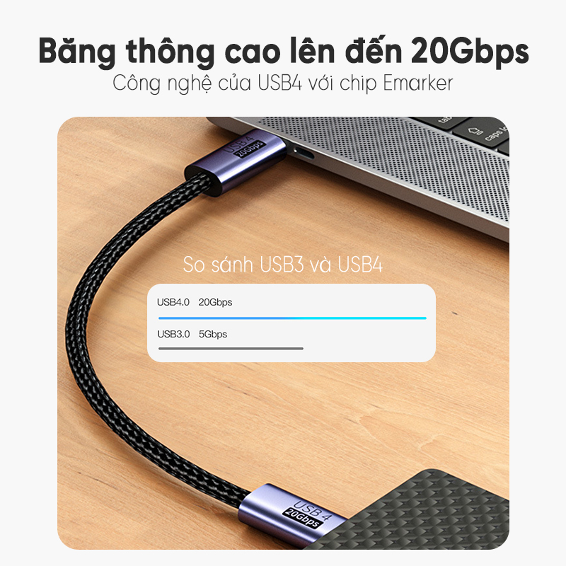 ***Lưu ý để đảm bảo máy nhận đủ 20Gbps, cần đáp ứng cả 3 điều kiện: máy & cáp & thiết bị sử dụng cắm trực tiếp đồng thời hỗ trợ tối thiểu chuẩn USB4