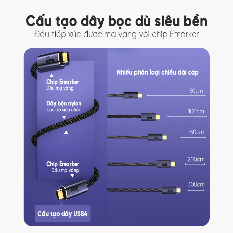 Tất cả trong 1 sợi cáp chân USB4 type-C:
