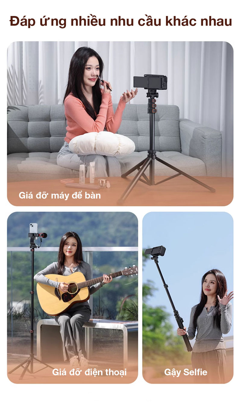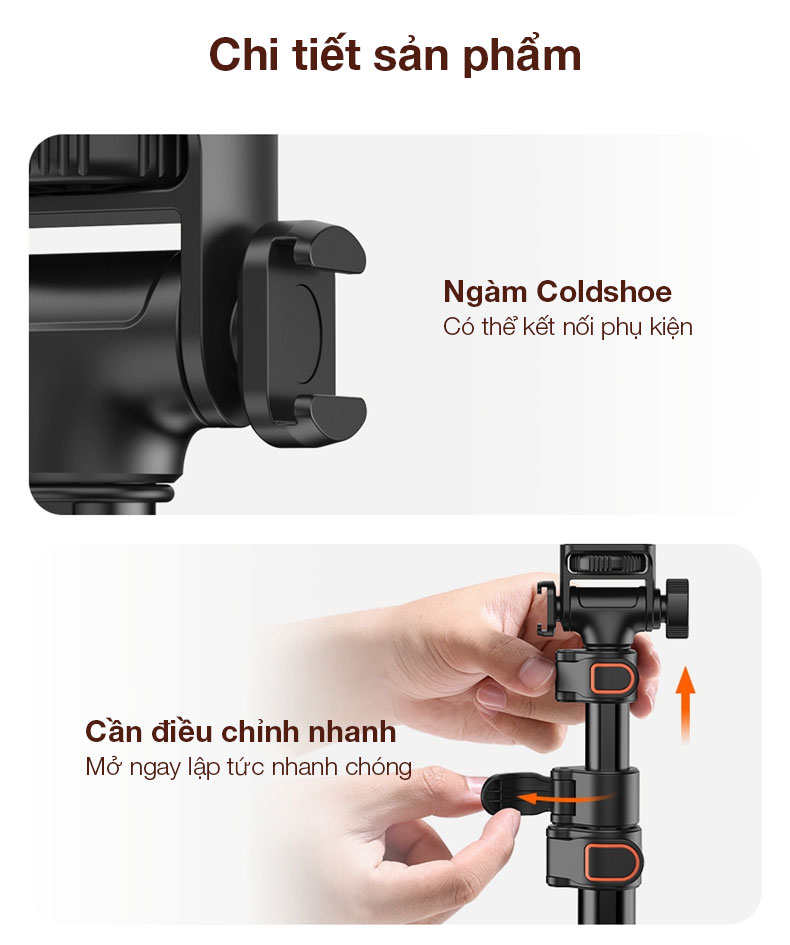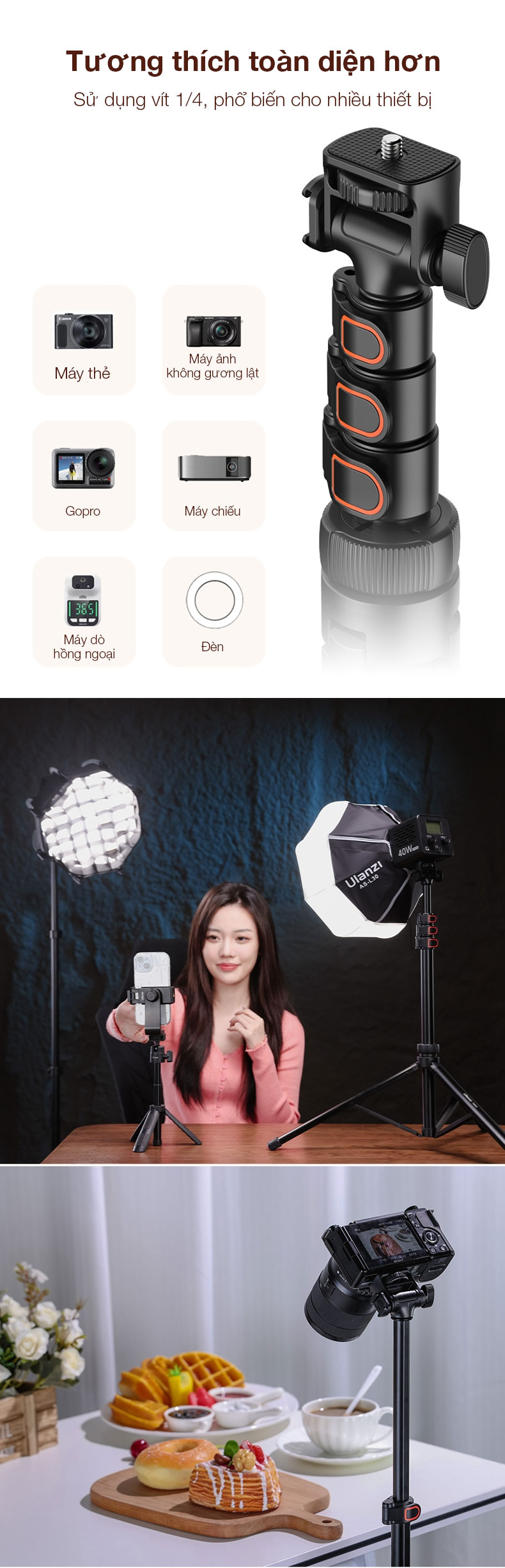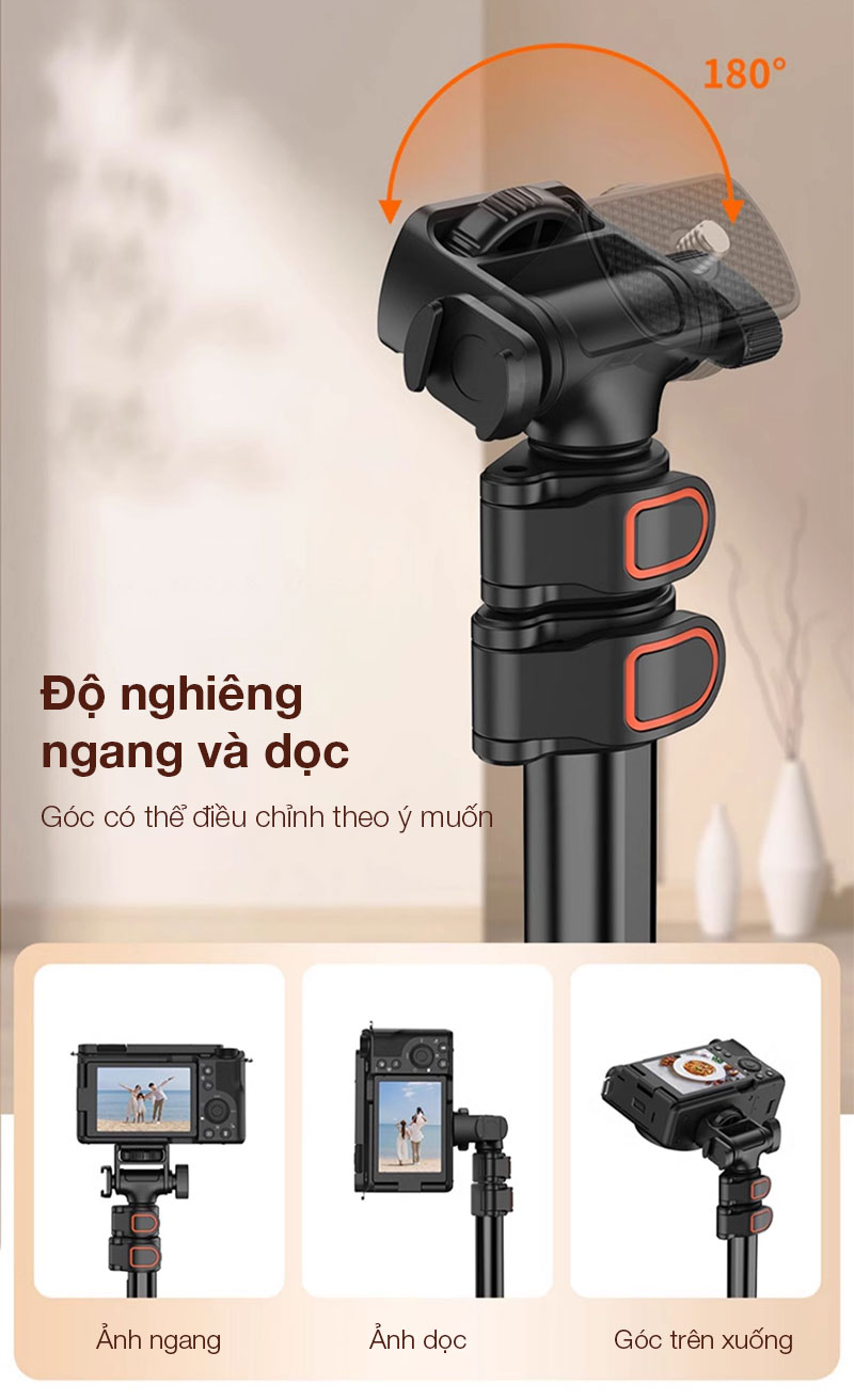 - Tích hợp điều khiển từ xa khoản cách lên tới 15m tiện lợi khi quay chụp 1 mình.